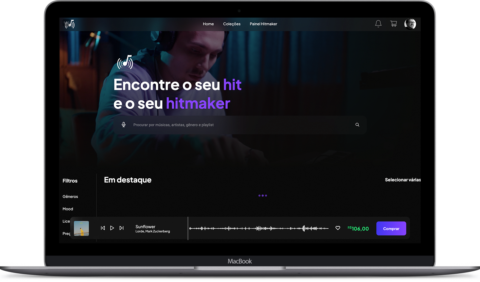 Marketing em larga escala, conectando compositores, artistas, produtores, editoras, gravadoras, agências e marcas.